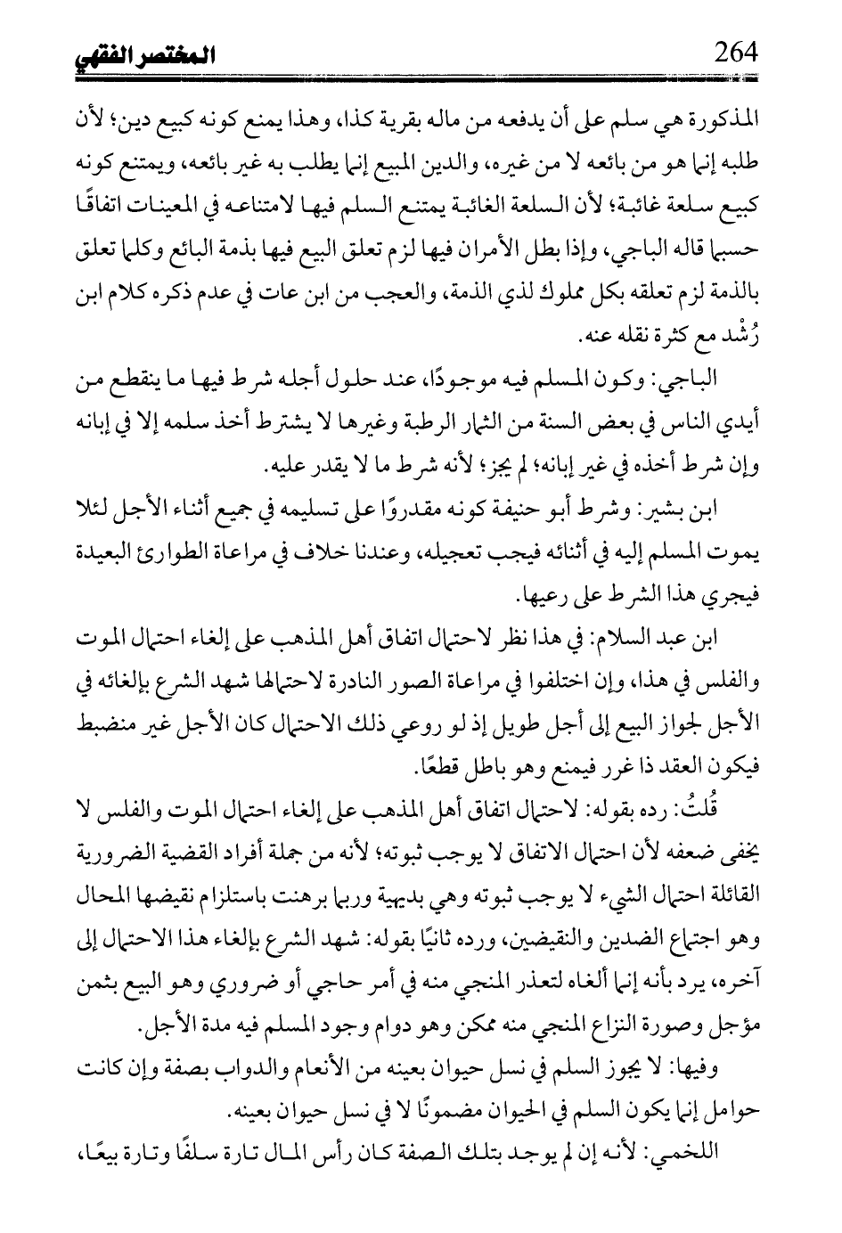 ابن بشير: وشرط أبو حنيفة كونه مقدورًا على تسليمه في جميع أثناء الأجل لئلا يموت المسلم إليه في أثنائه فيجب تعجيله، وعندنا خلاف في مراعاة الطوارئ البعيدة فيجري هذا الشرط على رعيها.