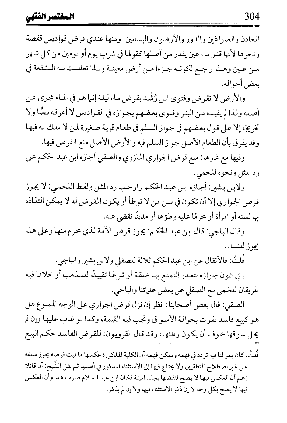 والأرض لا تقرض وفتوى ابن رُشْد بقرض ماء ليلة إنما هو في الماء مجرى عن أصله ولذا لم يقيده من البئر وفتوى بعضهم بجوازه في القواديس لا أعرفه نصًّا ولا تخريجًا إلا على قول بعضهم في جواز السلم في طعام قرية صغيرة لمن لا ملك له فيها وقد يفرق بأن الطعام الأصل جواز السلم فيه والأرض الأصل منع القرض فيها.