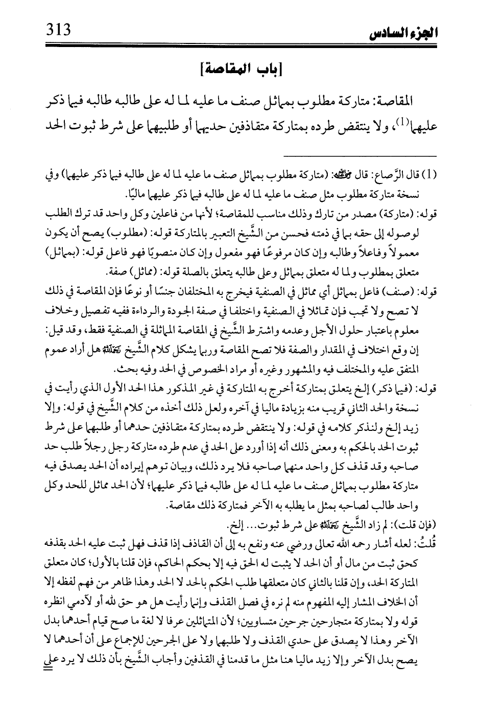 المقاصة: متاركة مطلوب بمماثل صنف ما عليه لما له على طالبه طالبه فيما ذكر عليهما، ولا ينتقض طرده بمتاركة متقاذفين حديهما أو طلبيهما على شرط ثبوت الحد