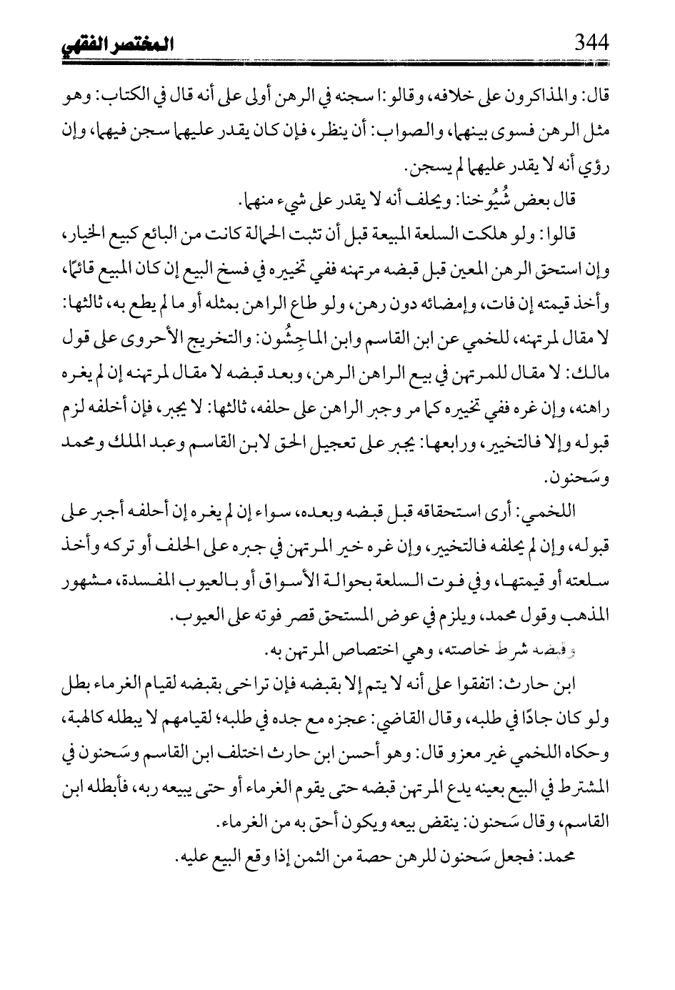 المازري: وهو قولها، وقول الشافعي، وقال أبو حنيفة: لا ينعقد فيه رهن، وخرجه الشَّيخ أبو الطيب عبد المنعم وهو أحد شيوخ شيوخي من قول بعض أصحابنا بناء على أن هبة المشاع لا تصح؛ لأن قبضه لا يتأتى، وأشار إلى تخريجه بعض من لقيت من منع من صرف جزء الدينار لامتناع القبض فيه.