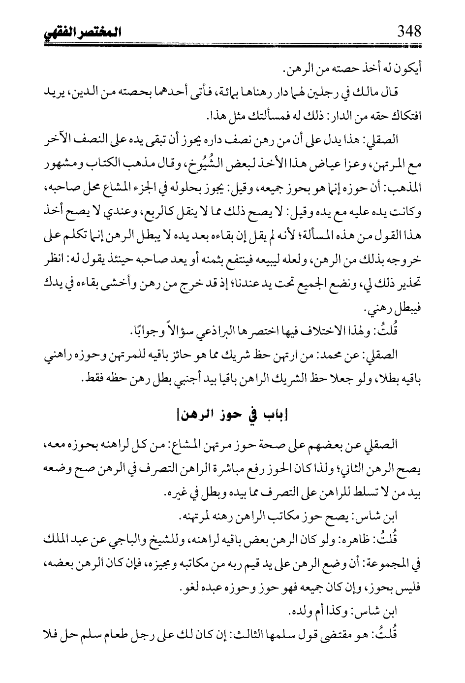 قول ابن عيد الحكم قال: وإن كان ذلك أرى أن يكون القول قول راهنه إتلافه وخوف مرتهنه ضمانه.