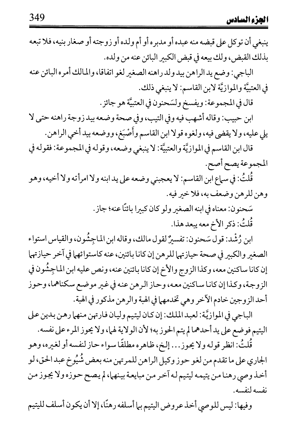 اللخمي: إن لم ينتزع من الراهن حتى فلس ففي كون المرتهن أحق به، قولا ابن القاسم في العتبية ومحمد، وعزا الأول ابن رشد لأصبغ أيضًا، والثاني: لعيسى بن دينار أيضًا، قال: والأول على قياس القول بأن كوه بيد العدل ككونه بيد مرتهنه في كونه شاهدًا، والثاني على أنه لا يكون بيد العدل شاهدا، وللصقلي فيها كلام حاصله أنه إن غرم المرتهن العدل قيمته قبل محاصة غرماء الراهن بالمرتهن بقية دينه، والعدل بما غرم، وغريم الراهن فيما وجد له أهل حصاص فيه بما لكل منهم، وإن حاص المرتهن غريم الراهن قبل غرم، لإغرامه العدل والرهن غير قائم بيد الراهن، ففي رجوعها على العدل وكل قيمة الرهن ويدر مناب قدرها مما أخذ في الحصاص؛ لأنه ظهر أنه لا حصاص له بها لغريم الراهن يضرب معه فيه ببقية دينه، وقصر رجوعه على العدل بقيمة الرهن مسقطًا منها منابها مما أخذه في الحصاص؛ لأنه بعد ما حاصص، فيختص بما رجع عليه، ثالثها: بتمام ما يجب له لو لم يسلم الرهن، وحاص بما بقي له مما بيد الراهن، غريمه للشيخ على قول محمد، ويحيى بن عمر في محاصة مرتهن زرع قبل بدو صلاحه، وللصقلي: مفرقًا بأن العدل حقًا فيما به حاصص المرتهن، والزرع لا حق له في ذلك.