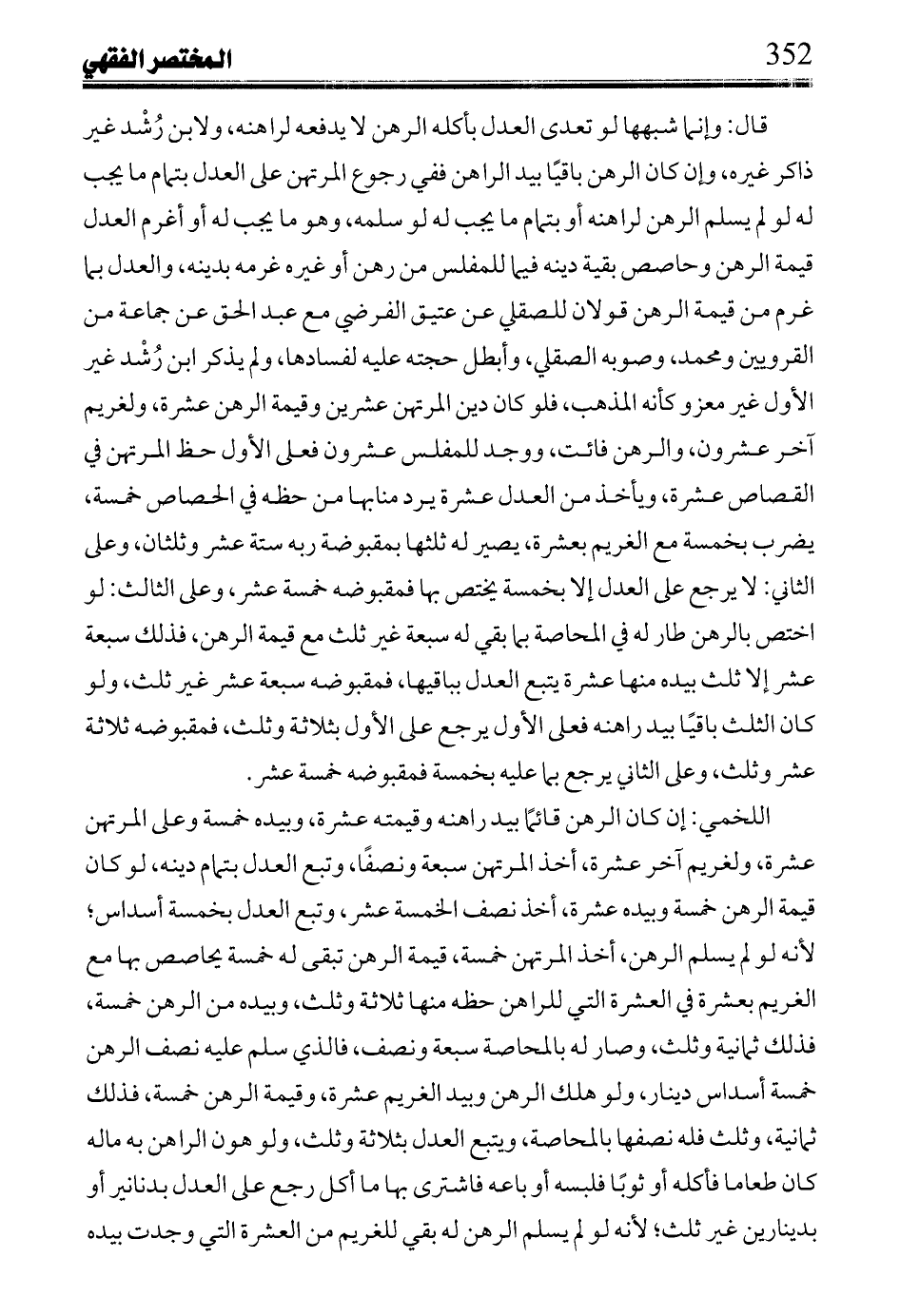 وقال ابن القاسم في المدونة: ليس له رده إن أعاره إياه إلا أن يعيره على ذلك فله رده ما لم يفت أو تقم الغرماء عليه، وقال أشهب: له رده عليه في العارية مطلقا، ولابن رشد في رسم العتق من سماع عيسى: ليس له رده في العارية قبل مضي أمد انتفاعه به اتفاقًا، بخلاف عارية الرجل ماله في رده قبل مضي ذلك قولان لها ولغيرها، وفي رده بعد مضي أمد انتفاعه قولا أشهب وابن القاسم في هذا السماع معها، وله رده في العارية المؤجلة بعد أجلها اتفاقًا، كإعارته على رده، فإن رده حيث يجب اتفاقًا أو على قول عاد رهنًا اتفاقا، وإن رده جاز اختياره حيث لا يجب اتفاقًا، وعلى قول من لا يوجبه ففي رجوعه رهنا مطلقا أو نص على رهينته قولا لابن القاسم ومالك بناء على عدم افتقار الرهن للتصريح به، وافتقاره له، وقول ابن القاسم فيها افتقاره، ولم يشترط هنا لاستصحاب تقدم كونه رهنا، وألغى مالك اعتبار تقدم كونه رهنا، ويجب على مذهبه إذا لم يكن رهنًا أن يكون أحق به ما لم تكن غرماء على نفي ما في الذمة.