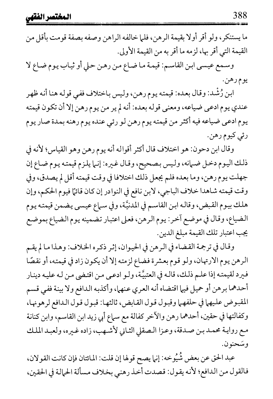 ابن رشد: وقال بعده: قيمته يوم رهن، وليس باختلاف ففي قوله هنا أنه ظهر عندي يوم ادعى ضياعه، ومعنى قوله بعده: أنه لم ير من يوم رهن إلا أن تكون قيمته يوم ادعى ضياعه فيه أكثر من قيمته يوم رهن لو رئي عنده يوم رهنه بمدة صار يوم رئي كيوم رهن.