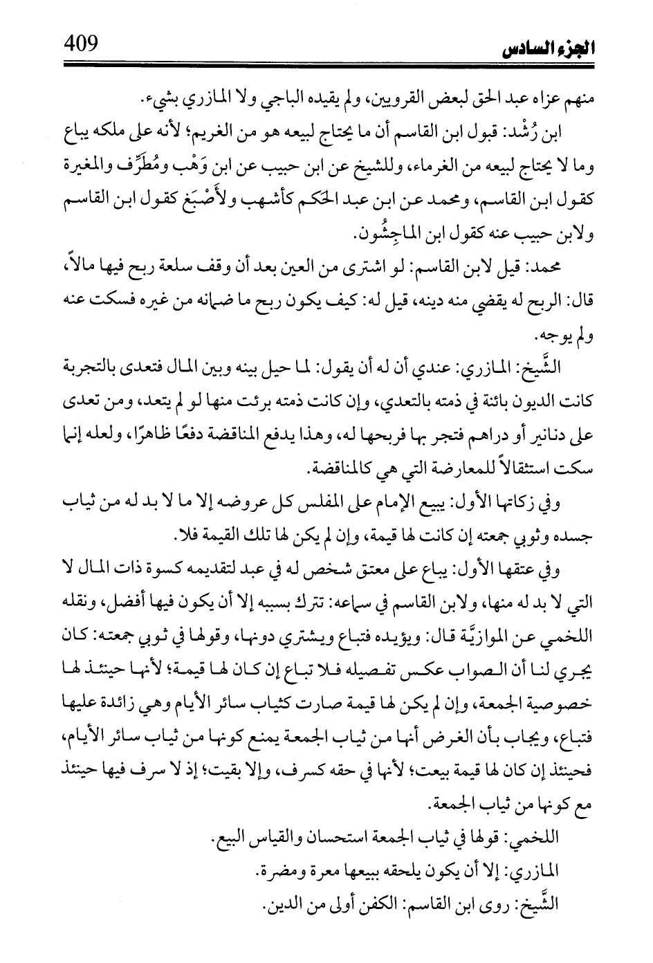 منهم عزاه الحق لبعض القرويين، ولم يقيده الباجي ولا المازري بشيء.