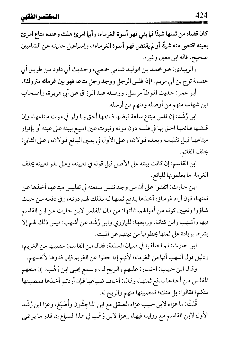 والزبيدي: هو محمد بن الوليد شامي حمصي، وحديث أبي داود من طريق ابي عصمة توج بن أبي مريم: ((إذا فلس الرجل ووجد رجل متاعه فهو بين غرمائه متروك)).
