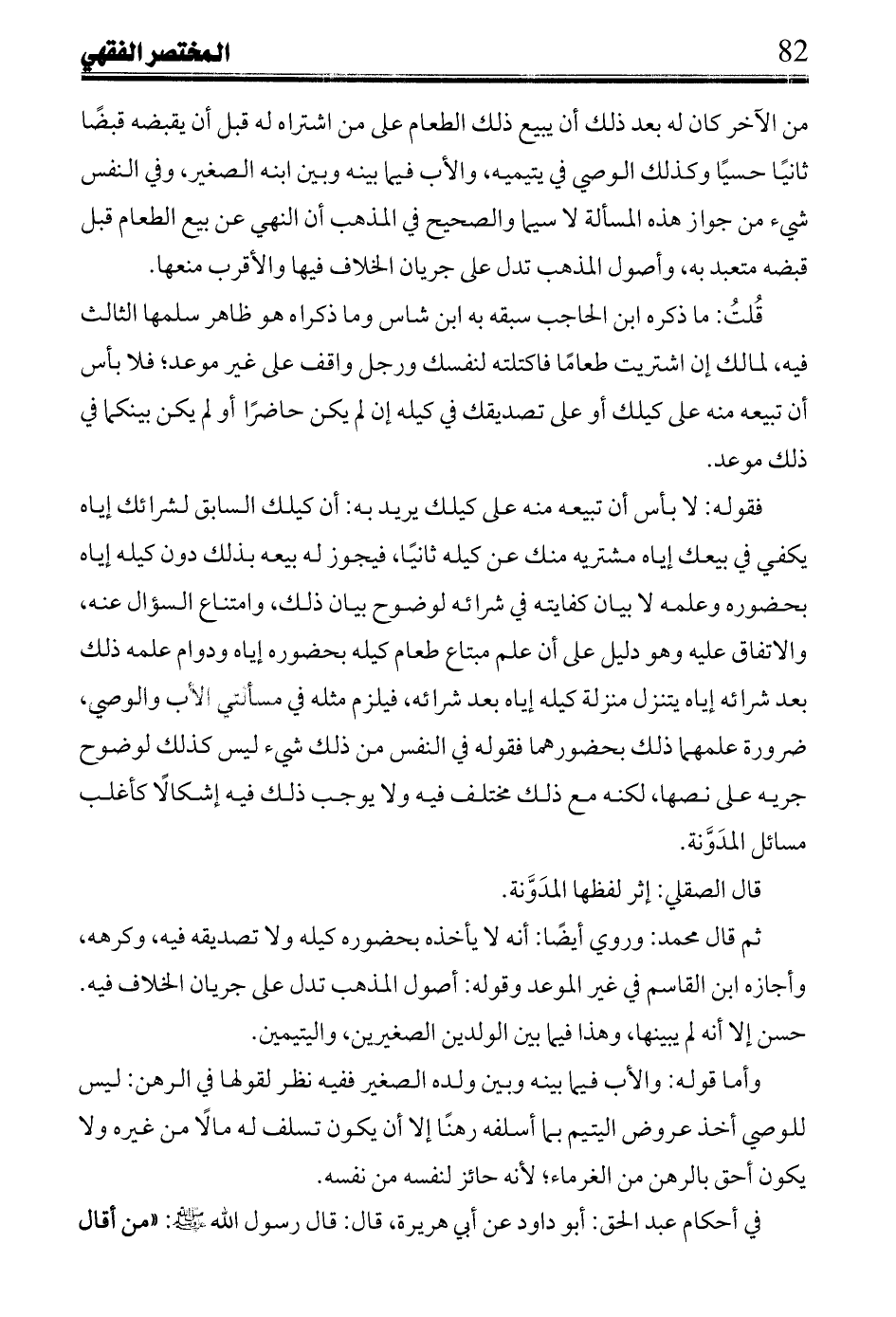 ثم قال محمد: وروي أيضًا: أنه لا يأخذه بحضوره كيله ولا تصديقه فيه، وكرهه، وأجازه ابن القاسم في غير الموعد وقوله: أصول المذهب تدل على جريان الخلاف فيه حسن إلا أنه لم يبينها، وهذا فيما بين الولدين الصغيرين، واليتيمين.