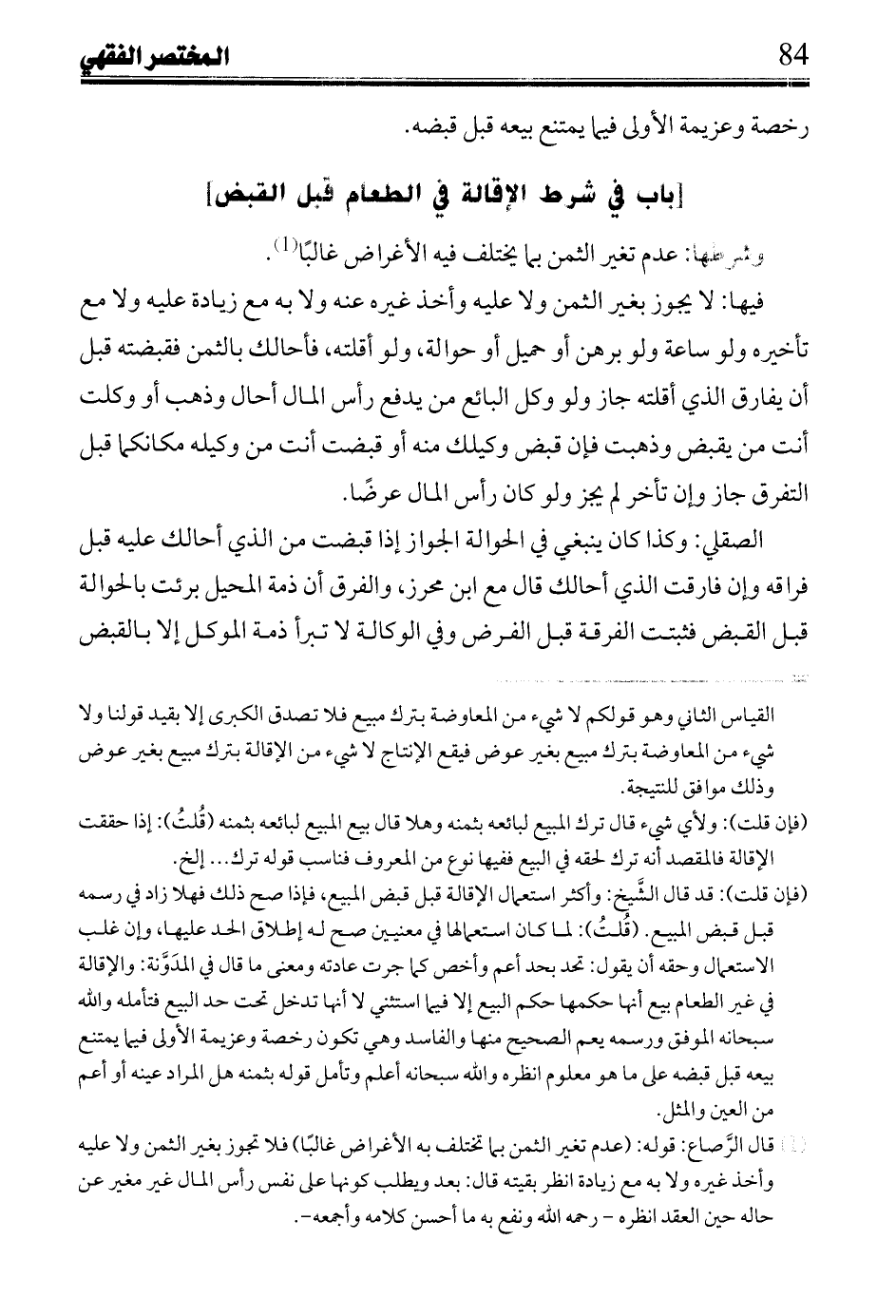 [باب في شرط الإقالة في الطعام قبل القبض]