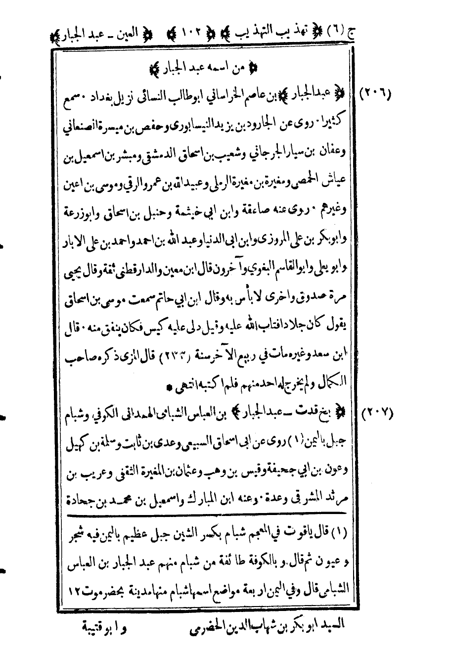 209 - "بخ قد ت عبد الجبار" بن العباس الشبامي الهمداني الكوفي وشبام جبل باليمن1 روى عن أبي إسحاق السبيعي وعدي بن ثابت وسلمة بن كهيل وعون بن أبي جحيفة وقيس بن وهب وعثمان بن المغيرة الثقفي وعريب بن مرثد المشرقي وعدة وعنه ابن مبارك وإسماعيل بن محمد بن جحادة