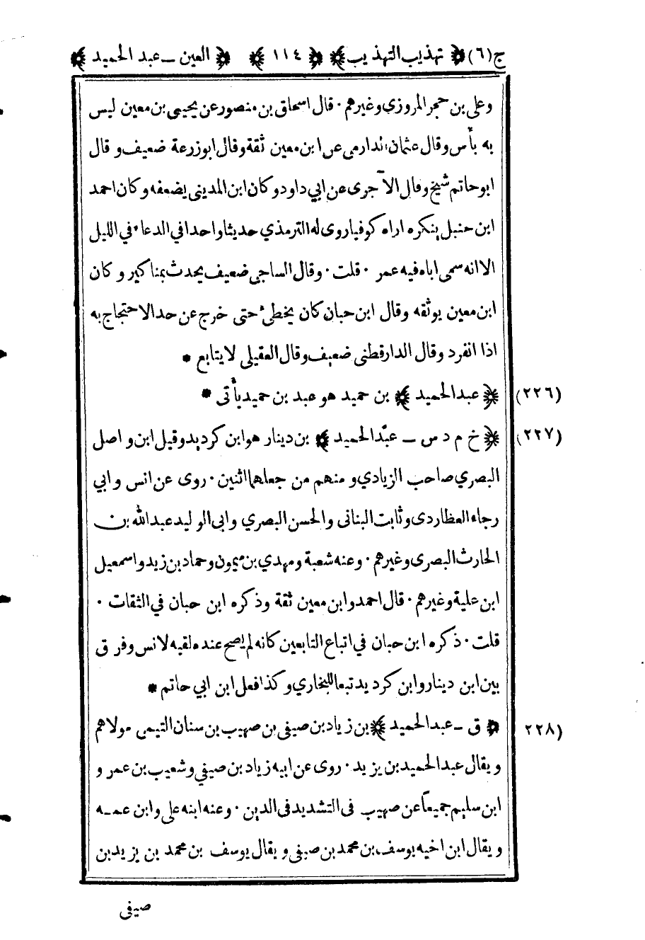 230 - "ق بن ماجة عبد الحميد بن زياد بن صيفي بن صهيب بن سنان التيمي مولاهم ويقال عبد الحميد بن يزيد روى عن أبيه زياد بن صيفي وشعيب بن عمرو بن سليم جميعا عن صهيب في التشديد في الدين وعنه ابنه علي وابن عمه ويقال ابن أخيه يوسف بن محمد بن صيفي ويقال يوسف بن محمد بن يزيد بن