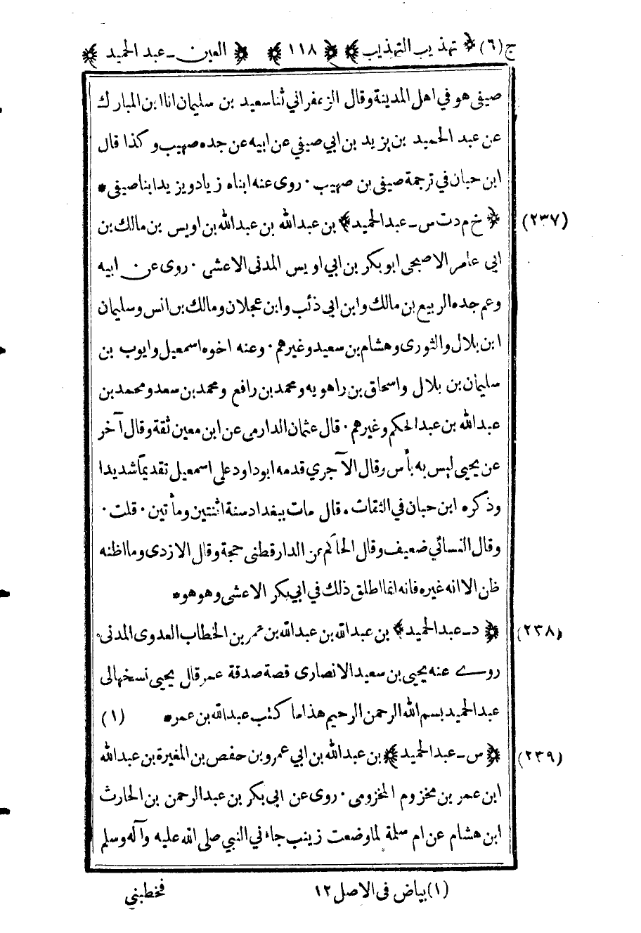 240 - "د عبد الحميد" بن عبد الله بن عبد الله بن عمر بن الخطاب العدوي المدني روى عنه يحيى بن سعيد الأنصاري قصة صدقة عمر قال يحيى نسخها لي عبد الحميد بسم الله الرحمن الرحيم هذا ما كتب عبد الله بن عمر. 1