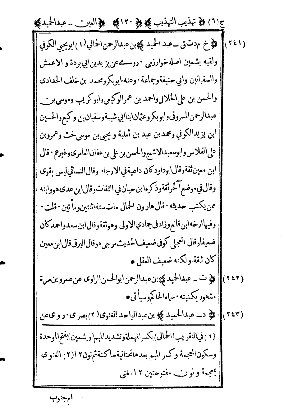 244 - "ت عبد الحميد" بن عبد الرحمن أبو الحسن الراوي عن عمرو بن مرة مشهور بكنيته سماه الحاكم وسيأتي.