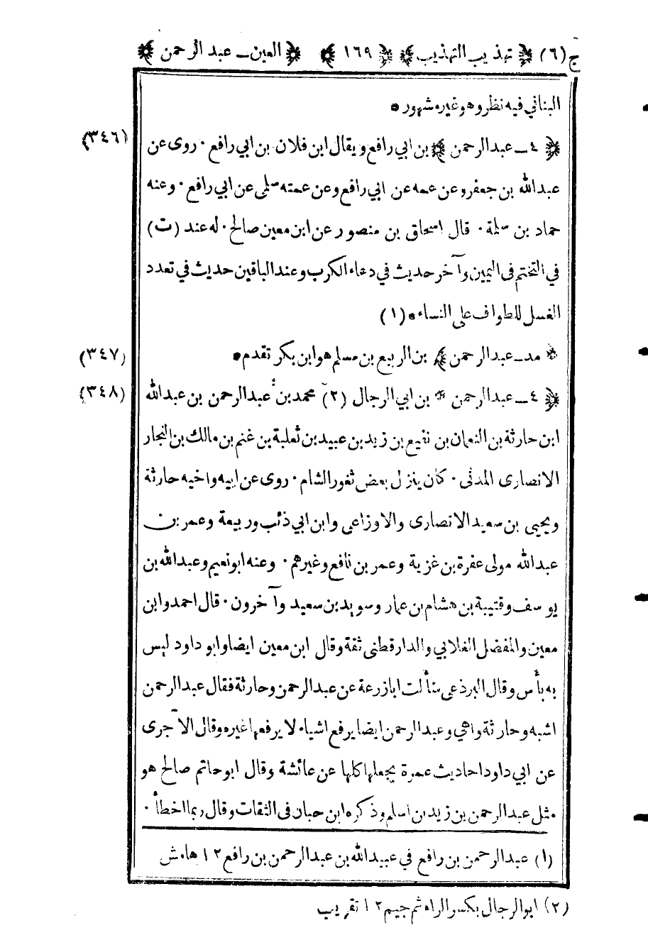 1 عبد الرحمن بن رافع في عبيد الله بن عبد الرحمن بن رافع 12 هامش.