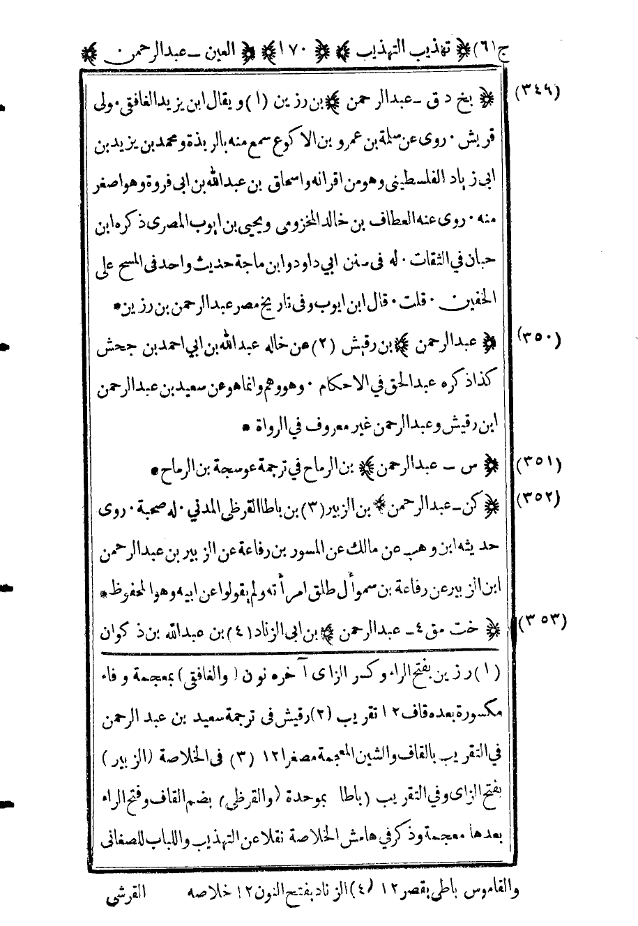 3 في الخلاصة الزبير بفتح الزاي وفي التقريب باطا بموحدة والقرظي بضم القاف وفتح الراء بعدها معجمة وذكر في هامش الخلاصة نقلا عن التهذيب واللباب للصغاني والقاموس باطي بقصر 12.