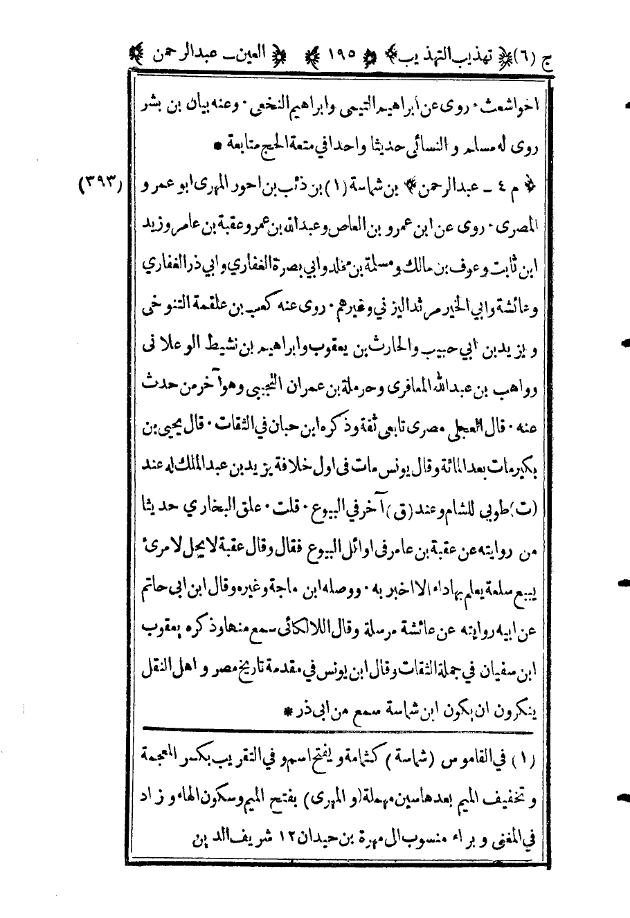 1 في القاموس شماسة كثمامة ويفتح اسم وفي التقريب بكسر المعجمة وتخفيف الميم بعدها سين مهملة والمهري بفتح الميم وسكون الهاء وزاد في المغني وبراء منسوب إلى مهرة بن حيدان 12 شريف الدين.