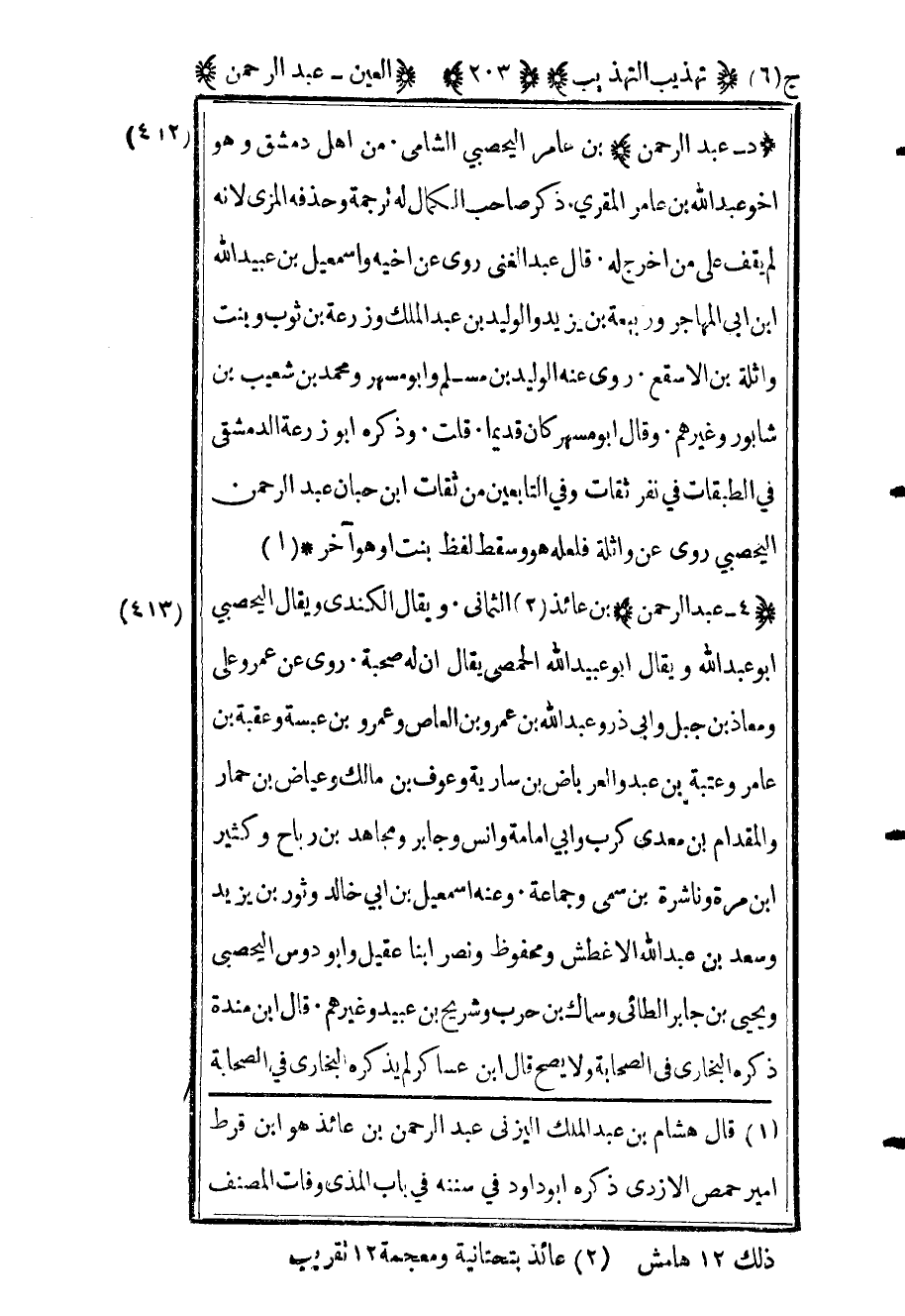 1 قال هشام بن عبد الملك اليزني عبد الرحمن بن عائذ هو ابن قرط أمير حمص الأزدي ذكره أبو داود في سننه في باب المذي وفات المصنف ذلك 12 هامش.