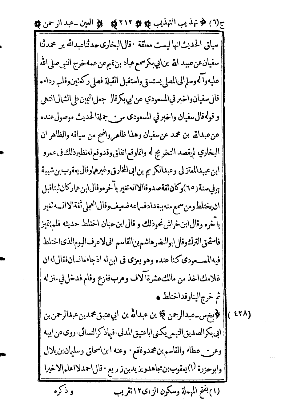 431 - "بخ س عبد الرحمن" بن عبد الله بن أبي عتيق محمد بن عبد الرحمن بن أبي بكر الصديق التيمي يكنى أبا عتيق المدني فيما ذكر النسائي روى عن أبيه وعن عطاء والقاسم بن محمد ونافع وعنه ابن إسحاق وسليمان بن بلال وأبو حزرة1 يعقوب بن مجاهد ويزيد بن زريع قال أحمد لا أعلم إلا خيرا
