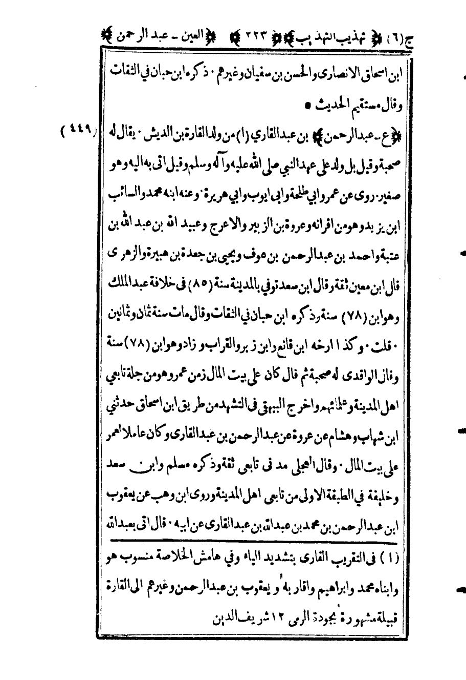1 في التقريب القاري بتشديد الياء وفي هامش الخلاصة منسوب هو وابناه محمد وإبراهيم وأقاربه ويعقوب بن عبد الرحمن وغيرهم إلى القارة قبيلة مشهورة بجودة الرمي 12 شريف الدين.