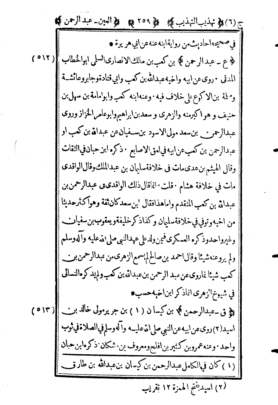 1 كان في الكامل عبد الرحمن بن كيسان بن عبد الله بن طارق. وقيل ابن بشر الحجازي وهو وهم والصواب ما هنا كما في تاريخ البخاري وكيسان بن عبد الله بن طارق والد نافع بن كيسان وليس بوالد عبد الرحمن بن كيسان 12 هامش الأصل.