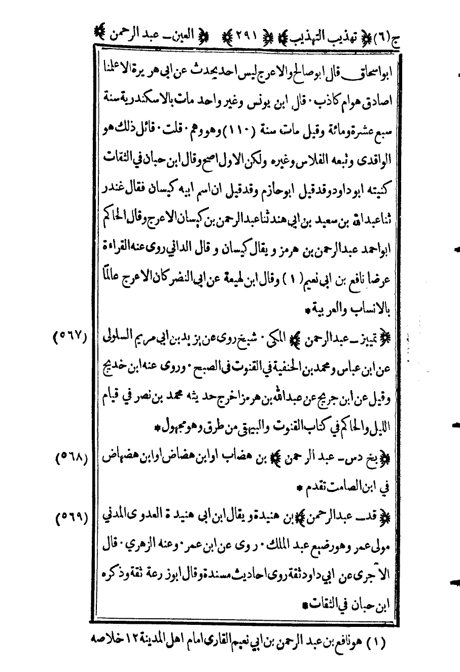 570 - "تمييز عبد الرحمن" المكي شيخ روى عن يزيد بن أبي مريم السلولي عن ابن عباس ومحمد بن الحنفية في القنوت في الصبح وروى عنه ابن خديج وقيل عن ابن جريج عن عبد الله ابن هرمز أخرج حديثه محمد بن نصر في قيام الليل والحاكم في كتاب القنوت والبيهقي من طرق وهو مجهول.