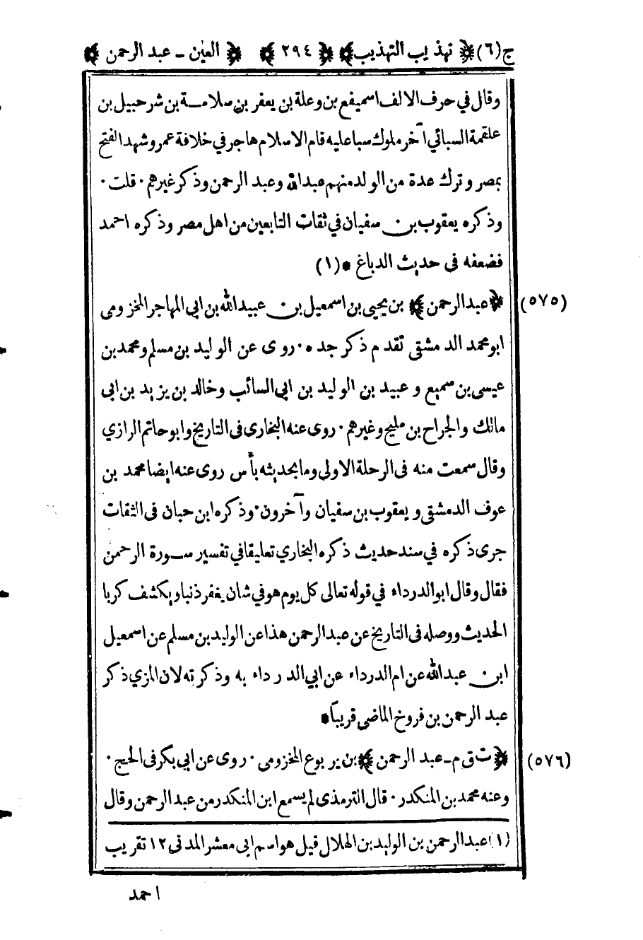 578 - "عبد الرحمن" بن يحيى بن إسماعيل بن عبيد الله بن أبي المهاجر المخزومي أبو محمد الدمشقي تقدم ذكر جده روى عن الوليد بن مسلم ومحمد بن عيسى بن سميع وعبيد بن الوليد ابن أبي السائب وخالد بن يزيد بن أبي مالك والجراح بن مليح وغيرهم روى عنه البخاري في التاريخ وأبو حاتم الرازي وقال سمعت منه في الرحلة الأولى وما بحديثه بأس روى عنه أيضا محمد ابن عوف الدمشقي ويعقوب بن سفيان وآخرون وذكره ابن حبان في الثقات جرى ذكره في سند حديث ذكره البخاري تعليقا في تفسير سورة الرحمن فقال وقال أبو الدرداء في قوله تعالى كل يوم هو في شأن يغفر ذنبا ويكشف كربا الحديث ووصله في التاريخ عن عبد الرحمن هذا عن الوليد بن مسلم عن إسماعيل بن عبد الله عن أم الدرداء عن أبي الدرداء به وذكرته لأن المزي ذكر عبد الرحمن بن فروخ الماضي قريبا.
