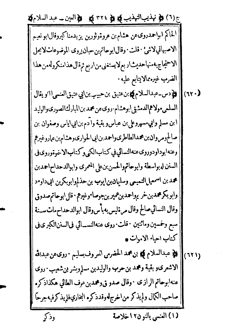 624 - "عبد السلام" بن محمد الحضرمي المعروف بسليم روى عن عبد الله الأشعري وبقية ومحمد بن حرب والوليد بن مسلم وبشر بن شعيب روى عنه أبو حاتم الرازي وقال صدوق ومحمد بن عوف الطائي هكذا ذكره صاحب الكمال ولم يذكر من أخرج له وقد ذكره البخاري فلم يذكر فيه جرحا