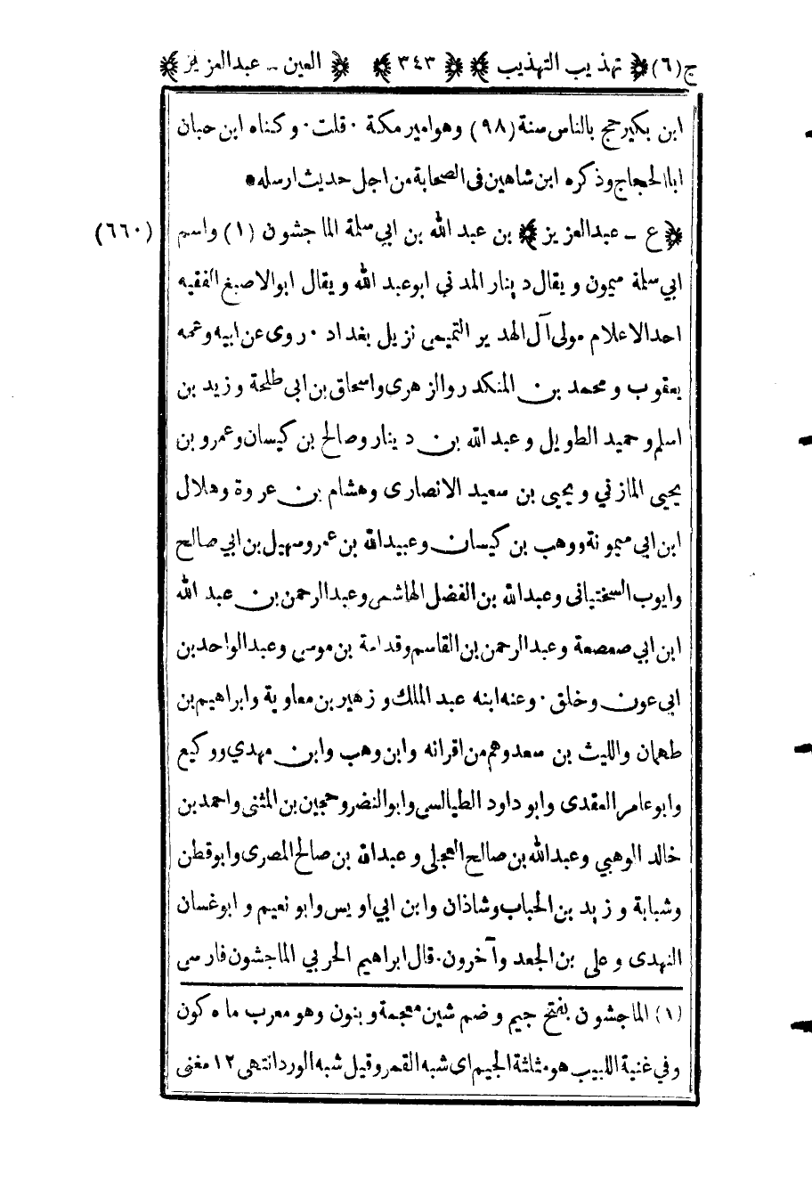 663 - "ع عبد العزيز" بن عبد الله بن أبي سلمة الماجشون1 واسم أبي سلمة ميمون ويقال دينار المدني أبو عبد الله ويقال الأصبغ الفقيه أحد الأعلام مولى آل الهدير التميمي نزيل بغداد روى عن أبيه وعمه يعقوب ومحمد بن المنكدر والزهري وإسحاق بن أبي طلحة وزيد بن أسلم وحميد الطويل وعبد الله بن دينار وصالح بن كيسان وعمرو بن يحيى المازني ويحيى بن سعيد الأنصاري وهشام بن عروة وهلال بن أبي ميمونة ووهب بن كيسان وعبيد الله بن عمر وسهيل ابن أبي صالح وأيوب السختياني وعبد الله بن الفضل الهاشمي وعبد الرحمن بن عبد الله بن أبي صعصعة وعبد الرحمن بن القاسم وقدامة بن موسى وعبد الواحد بن أبي عون وخلق وعنه ابنه عبد الملك وزهير بن معاوية وإبراهيم بن طهمان والليث بن سعد وهم من أقرانه وابن وهب وابن مهدي ووكيع وأبو عامر العقدي وأبو داود الطيالسي وأبو النضر وحجين بن المثنى وأحمد ابن خالد الوهبي وعبد الله بن صالح العجلي وعبد الله بن صالح المصري وأبو قطن وشبابة وزيد ابن الحباب وشاذان وابن أبي أويس وأبو نعيم وأبو غسان النهدي وعلي بن الجعد وآخرون قال إبراهيم الحربي الماجشون فارسي