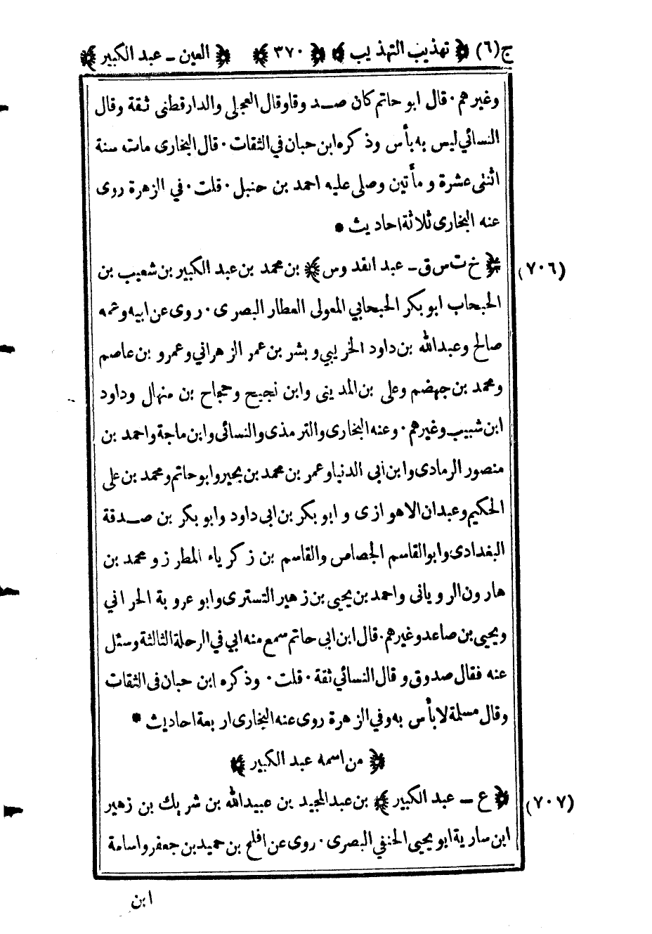 710 - "ع عبد الكبير" بن عبد المجيد بن عبيد الله بن شريك بن زهير بن سارية أبو يحيى الحنفي البصري روى عن أفلح بن حميد بن جعفر وأسامة