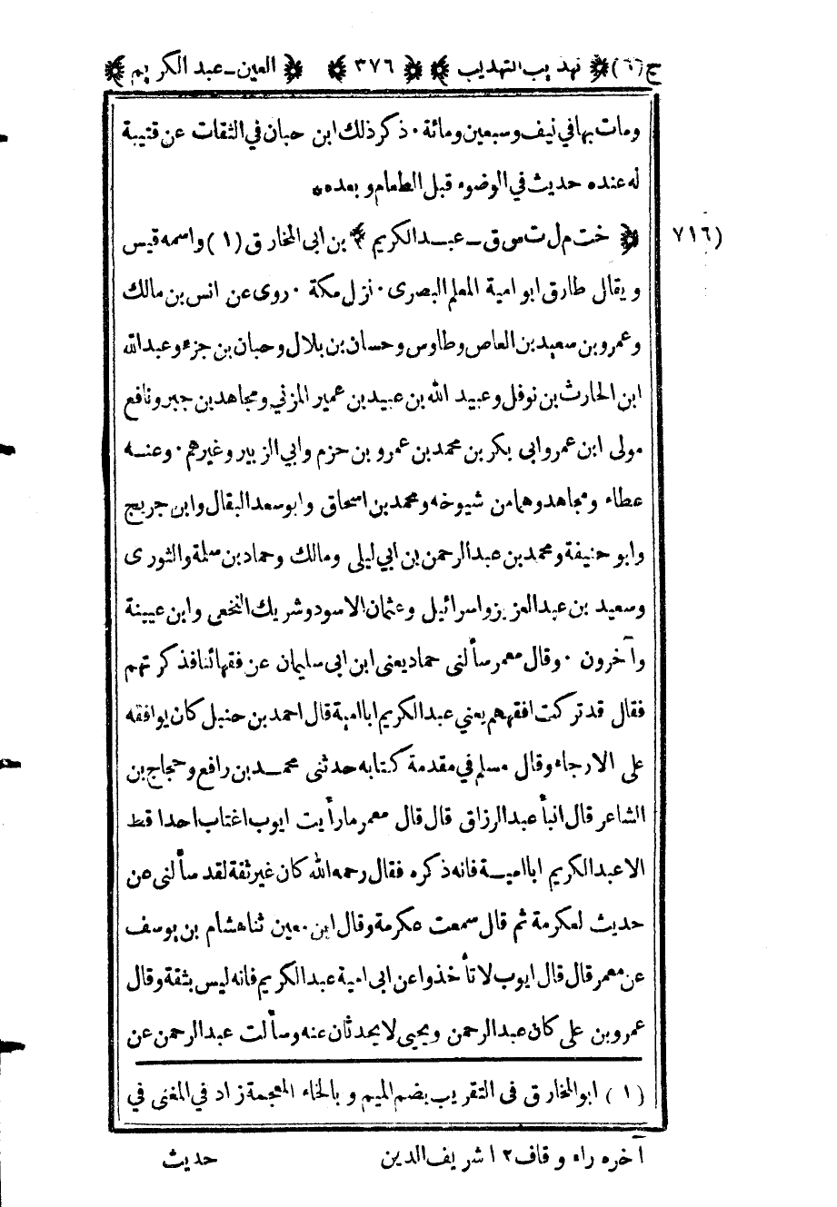 1 أبو المخارق في التقريب بضم الميم وبالخاء المعجمة زاد في المغني في آخره راء وقاف 12 شريف الدين.