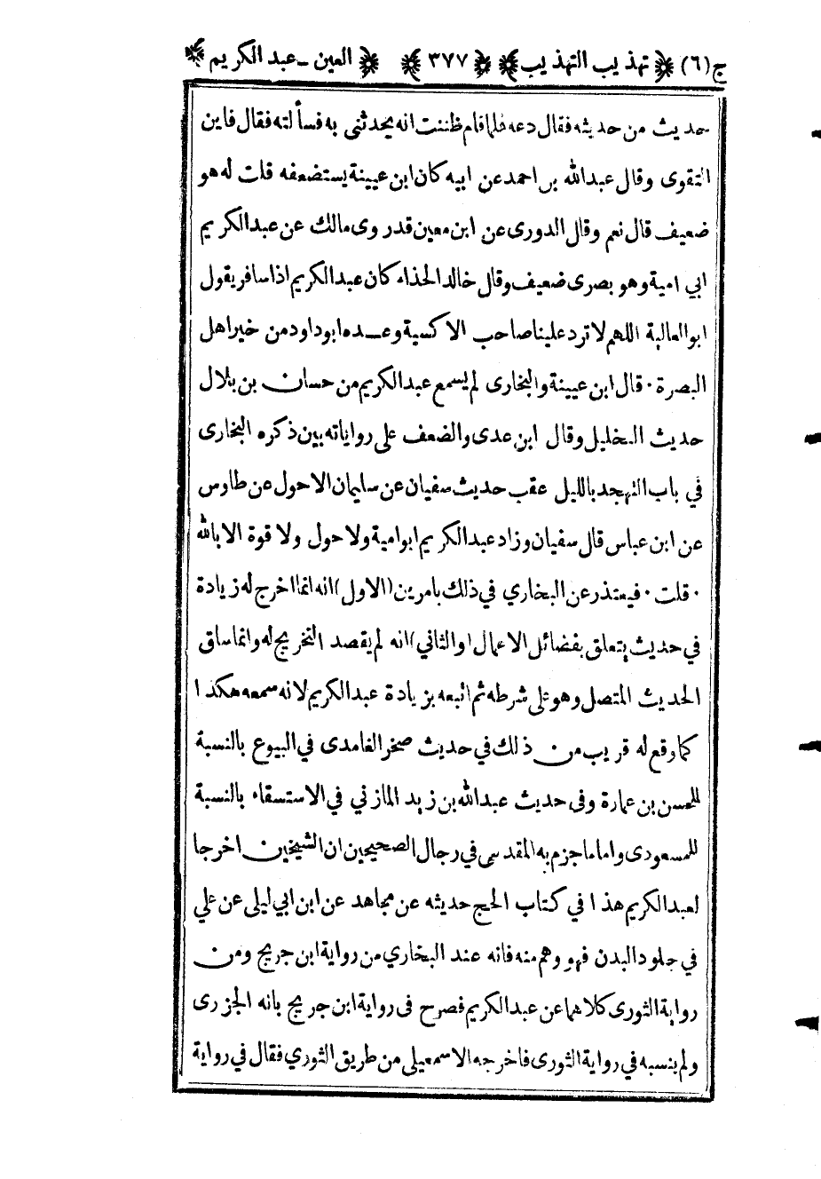 حديث من حديثه فقال دعه فلما قام ظننت أنه يحدثني به فسألته فقال فأين التقوى وقال عبد الله بن أحمد عن أبيه كان ابن عيينة يستضعفه قلت له هو ضعيف قال نعم وقال الدوري عن ابن معين قد روى مالك عن عبد الكريم أبي أمية وهو بصري ضعيف وقال خالد الحذاء كان عبد الكريم إذا سافر يقول أبو العالية اللهم لا ترد علينا صاحب الأكسية وعده أبو داود من خير أهل البصرة قال ابن عيينة والبخاري لم يسمع عبد الكريم من حسان بن بلال حديث الخليل وقال ابن عدي والضعف على رواياته بين ذكره البخاري في باب التهجد بالليل عقب حديث سفيان عن سليمان الأحول عن طاوس عن ابن عباس قال سفيان وزاد عبد الكريم أبو أمية ولا حول ولا قوة إلا بالله قلت فيعتذر عن البخاري في ذلك بأمرين الأول أنه إنما أخرج له زيادة في حديث يتعلق بفضائل الأعمال والثاني أنه لم يقصد التخريج له وإنما ساق الحديث المتصل وهو على شرطه ثم اتبعه بزيادة عبد الكريم لأنه سمعه هكذا كما وقع له قريب من ذلك في حديث صخر الغامدي في البيوع بالنسبة للحسن بن عمارة وفي حديث عبد الله بن زيد المازني في الاستسقاء بالنسبة للمسعودي وأما ما جزم به المقدسي في رجال الصحيحين أن الشيخين أخرجا لعبد الكريم هذا في كتاب الحج حديثه عن مجاهد عن ابن أبي ليلى عن علي في جلود البدن فهو وهم منه فإنه عند البخاري من رواية ابن جريج ومن رواية الثوري وكلاهما عن عبد الكريم فصرح في رواية ابن جريج بأنه الجزري ولم ينسبه في رواية الثوري فأخرجه الإسماعيلي من طريق الثوري فقال في رواية