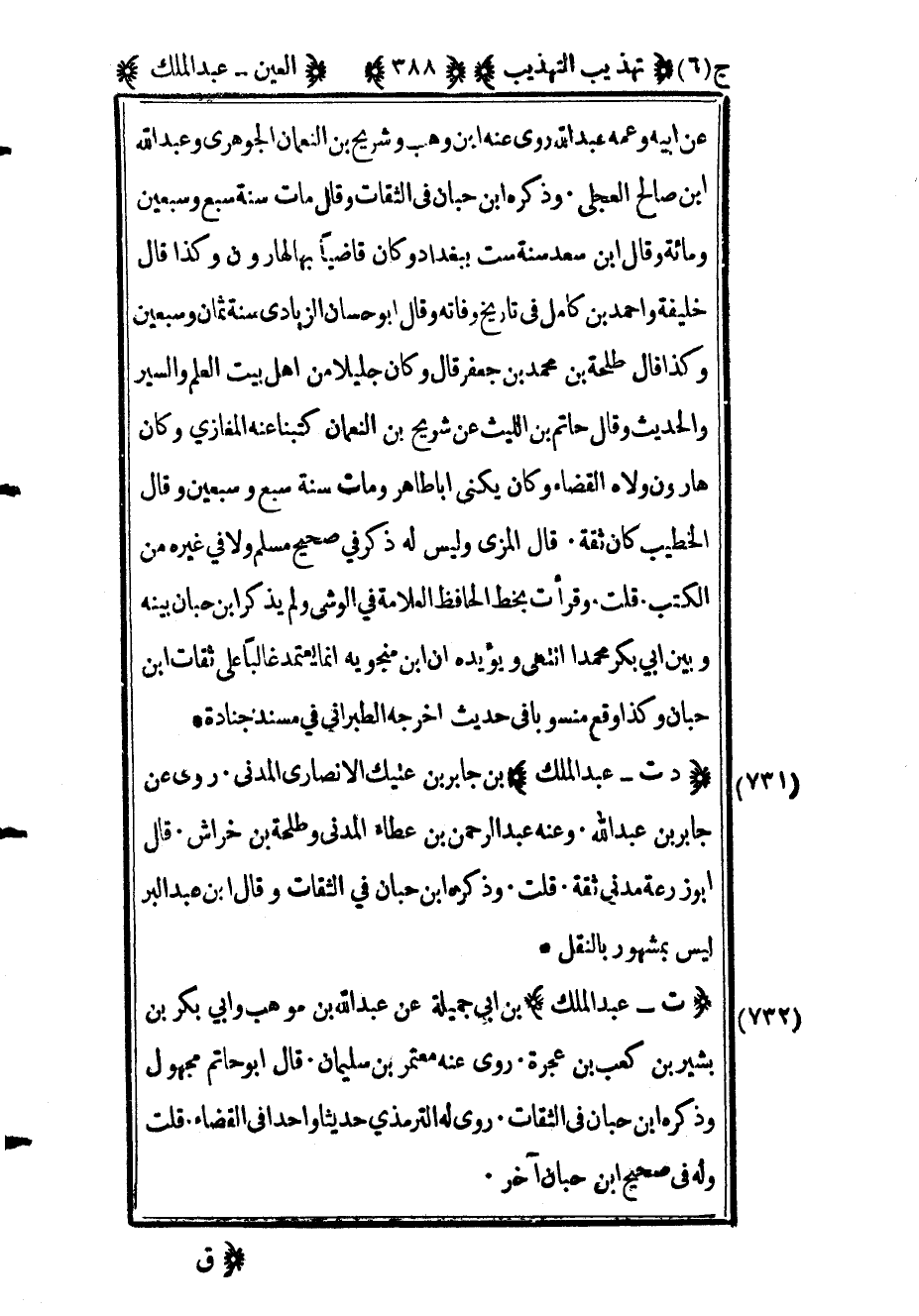 734 - "د ت عبد الملك" بن جابر بن عتيك الأنصاري المدني روى عن جابر بن عبد الله وعنه عبد الرحمن بن عطاء المدني وطلحة بن خراش قال أبو زرعة مدني ثقة قلت وذكره ابن حبان في الثقات وقال ابن عبد البر ليس بمشهور بالنقل.
