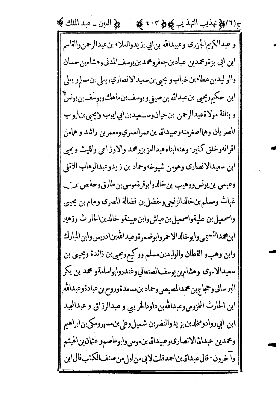 ومحمد بن جابر السحيمي ومحمد بن رمانه وغيرهم وعنه أحمد بن حنبل وأحمد بن صالح المصري وكناه أبا هشام وإسحاق بن راهويه وعمرو بن علي الصيرفي وأبو سلمة مسلم بن محمد ابن مسلم بن عفان الهمداني الصنعاني الفقيه وإبراهيم بن محمد بن عرعرة ونوح بن حبيب ونسباه إلى هشام وغيرهم قال أبو زرعة منكر الحديث وقال أبو حاتم شيخ وقال في موضع آخر ليس بالقوي وقال عمرو بن علي ثنا أبو العباس عبد الملك بن عبد الرحمن الذماري وكان ثقة وقال في موضع آخر وكان صدوقا وذكره ابن حبان في الثقات وقال أبو داود كان قاضيا فقضى بقود فدخلت عليه الخوارج فقتلته وقال ابن عدي سمعت ابن حماد يقول قال البخاري عبد الملك بن عبد الرحمن أبو العباس الشامي نزل البصرة عن الأوزاعي ضعفه عمرو بن علي منكر الحديث قال ابن عدي وقد أخرجت له في حديث الأوزاعي أحاديث مناكير انتهى وقد فرق أبو حاتم والبخاري بين الشامي والذماري وكلاهما يروي عنه عمرو بن علي قلت والصواب التفريق بينهما فأما الشامي فهو المكنى بأبي العباس وهو الذي يروي عن الأوزاعي وإبراهيم بن أبي عبلة وهو الذي قال فيه البخاري منكر الحديث وتبعه أبو زرعة وقال فيه أبو حاتم ليس بالقوي وضعفه عمرو بن علي وأما الذماري فهو المكنى بأبي هشام واسم جده أيضا هشام وهو الذي قال فيه أبو حاتم شيخ ولم يذكر فيه البخاري في التاريخ جرحا ولا تعديلا وذكره ابن حبان في الثقات ووثقه عمرو بن علي وقال فيه أحمد بن حنبل فيما حكاه الساجي كان يصحف ولا يحسن يقرأ كتابه وعلق البخاري
