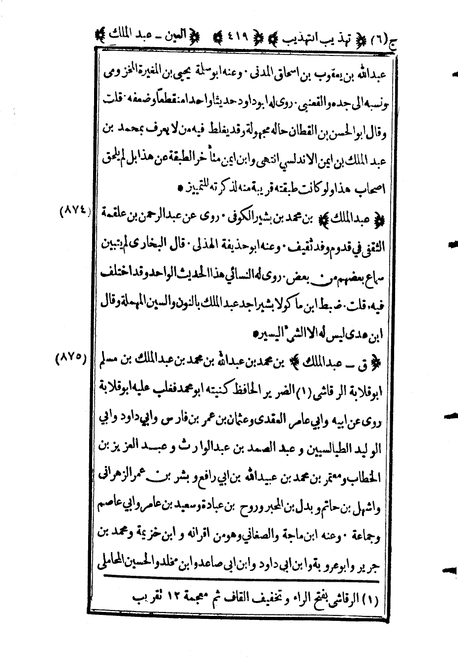 1 عبد الملك بن القعقاع أو ابن أبي القعقاع في عبد الملك بن نافع 12 هـ.