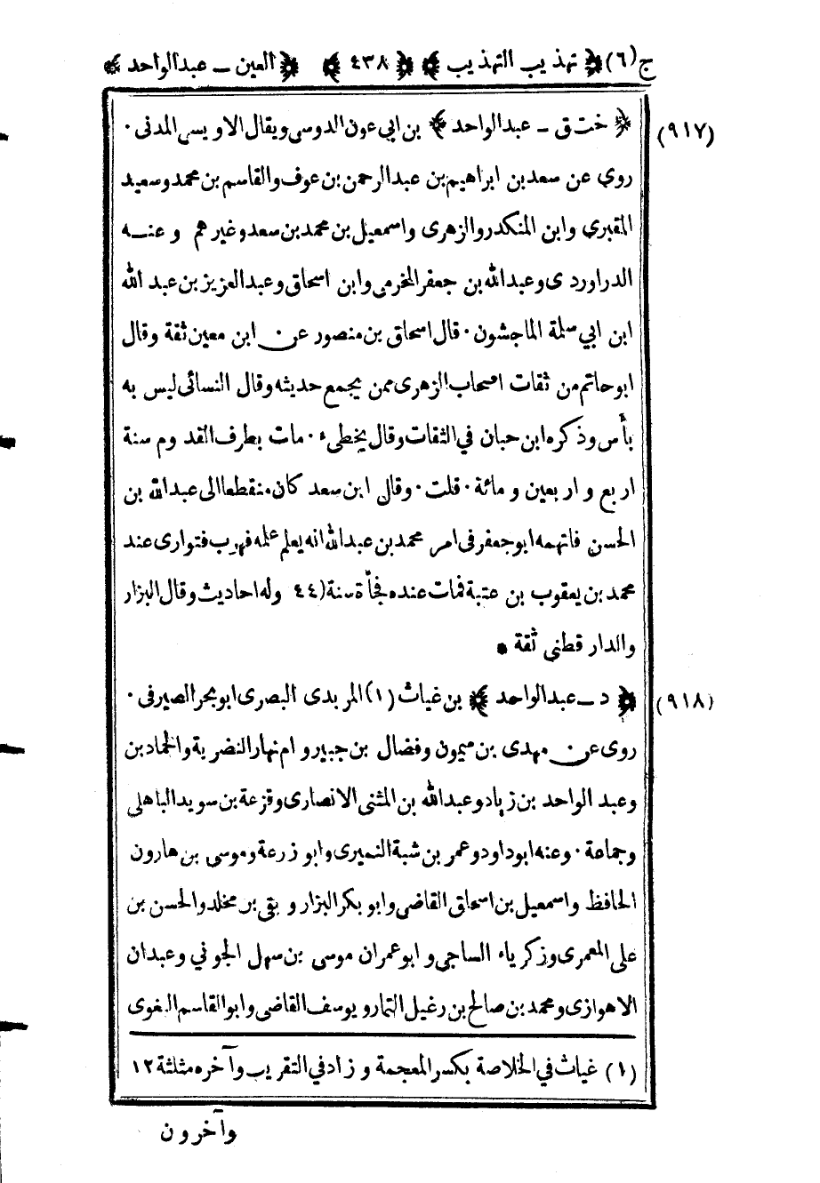 818 - "فق عبد الواحد" بن صفوان بن أبي عياش الأموي مولى عثمان مدني سكن البصرة روى عن أبيه وعكرمة وعبد الرحمن بن أبي بكرة وعنه يحيى بن سعيد القطان وعفان ومسلم بن إبراهيم وموسى بن إسماعيل وهدبة بن خالد قال ابن معين ليس بشيء وقال مرة صالح وذكره ابن حبان في الثقات.