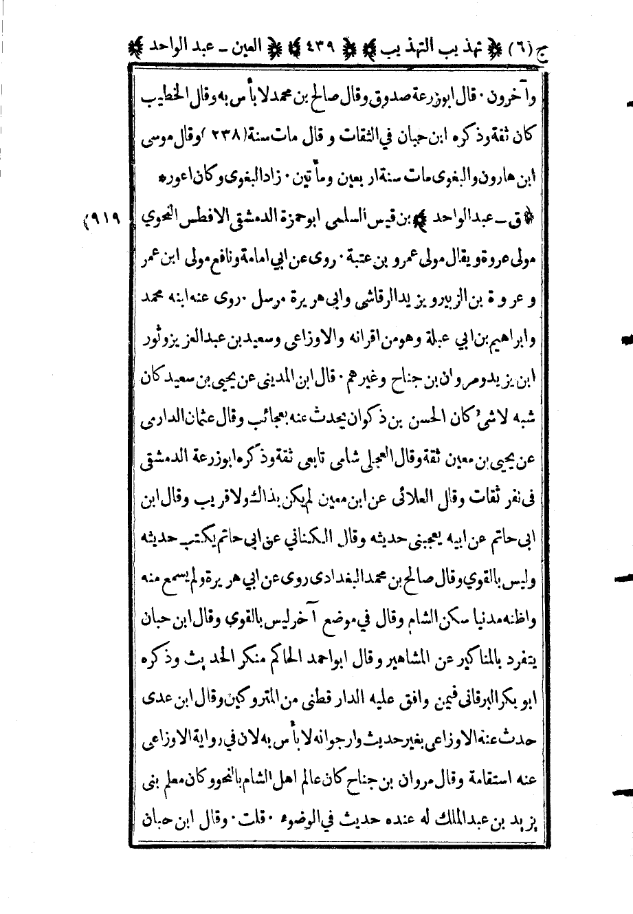 عجلان والزبيدي وغيرهم ذكره أبو زرعة الدمشقي وقال هو جدنا ولي حمص وولي المدينة وقال ابن جوصاء أبو زرعة الدمشقي عبد الواحد بن عبد الله بن بسر لعبد الله أبيه صحبة قال ابن جوصاء هذا آخر ذلك المازني وهذا مدني ذاك حمصي وهذا دمشقي وقال مصعب الزبيري بلغني عن القاسم بن محمد بن شبيل غير شيء فقال ما زلت أحبه حتى بلغني أن الأمير يكرهه والأمير إذ ذاك عبد الواحد وقال العجلي شامي تابعي ثقة وقال ابن أبي حاتم سألت أبي عنه فقال كان واليا على المدينة صالح الحديث قلت يحتج به قال لا وقال الدارقطني ثقة من أهل حمص محمود الامارة والي المدينة وذكره ابن حبان في الثقات وقال سعد بن إبراهيم الزهري حج بالناس سنة أربع ومائة وقال الواقدي ولي المدينة ومكة والطائف سنة "104" فكان يذهب مذاهب الخير1 ولا يقطع أمر إلا استشار فيه القاسم وسالم بن عبد الله ولم يقدم عليهم وآل أحب إليهم منه وكان يتعفف في حالاته كلها وقال مصعب الزبيري كان رجلا صالحا له في الصحيح إن من أعظم الفري الحديث قلت أرسل إليه يزيد بن عبد الملك بن مروان وهو بالطائف فولاه المدينة بدلا من عبد الرحمن بن الضحاك بن قيس الفهري سنة "104" فبقي إلى أن عزله هشام ابن عبد الملك سنة ست فكانت ولايته سنة وثمانية أشهر وستأتي قصة عراك بن مالك معه في ترجمته.