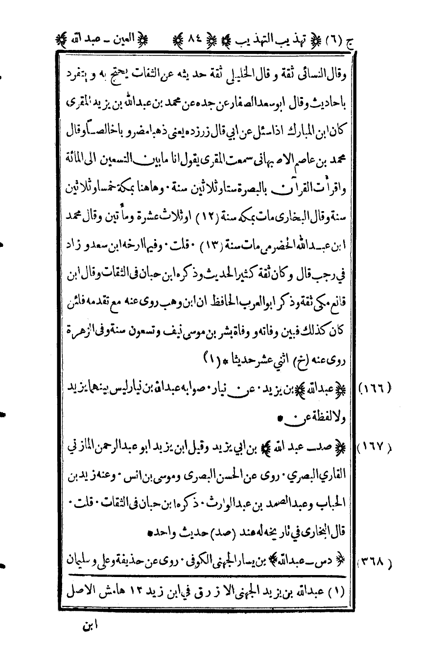 168 - "صد عبد الله" بن أبي يزيد وقيل بن يزيد أبو عبد الرحمن المازني القاري البصري روى عن الحسن البصري وموسى بن أنس وعنه زيد بن الحباب وعبد الصمد بن عبد الوارث ذكره ابن حبان في الثقات قلت قال البخاري في تاريخه له عند "صد" حديث واحد.