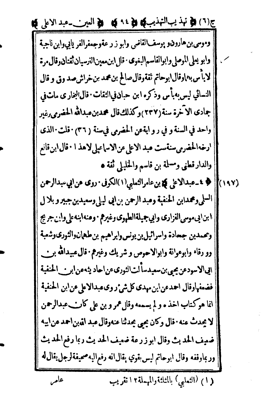 198 - "4 عبد الأعلى" بن عامر الثعلبي1 الكوفي روى عن أبي عبد الرحمن السلمي ومحمد بن الحنفية وعبد الرحمن بن أبي ليلى وسعيد بن جبير وبلال بن أبي موسى الفزاري وأبي جميلة الطهوي وغيرهم وعنه ابنه علي وابن جريج ومحمد بن جحادة وإسرائيل بن يونس وإبراهيم بن طهمان والثوري وشعبة وورقاء وأبو عوانة وأبو الأحوص وشريك وغيرهم قال عبيد الله بن أبي الأسود عن يحيى بن سعيد سألت الثوري عن أحاديثه عن ابن الحنفية فضعفها وقال أحمد عن ابن مهدي كل شيء روى عبد الأعلى عن ابن الحنفية إنما هو كتاب أخذه ولم يسمعه وقال عمرو ابن علي كان عبد الرحمن لا يحدث عنه قال وكان يحيى يحدثنا عنه وقال عبد الله بن أحمد عن أبيه ضعيف الحديث وقال أبو زرعة ضعيف الحديث ربما رفع الحديث وربما وقفه وقال أبو حاتم ليس بقوي يقال إنه رفع إليه صحيفة لرجل يقال له