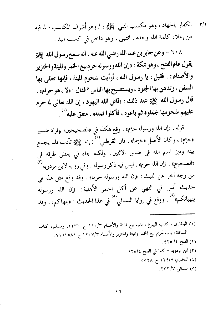 (¬1) البخاري، كتاب البيوع، باب بيع الميتة والأصنام 3/ 110 ح 2236، ومسلم، كتاب المساقاة، باب تحريم بيع الخمر والميتة والخنزير والأصنام 3/ 1207 ح 1581/ 71.
