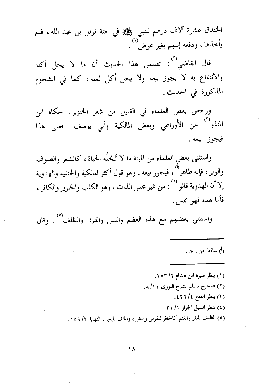 ورخص بعض العلماء في القليل من شعر الخنزير. حكاه ابن المنذر (¬3) عن الأوزاعي وبعض المالكية وأبي يوسف. فعلى هذا فيجوز بيعه.