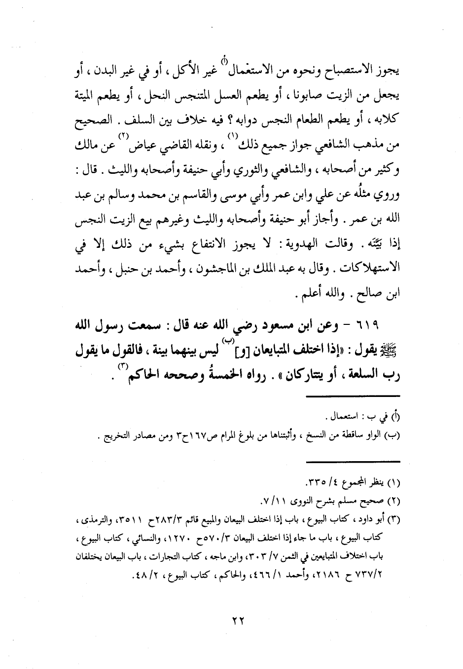 (ب) الواو ساقطة من النسخ، وأثبتناها من بلوغ المرام ص 167 ح 3 ومن مصادر التخريج.