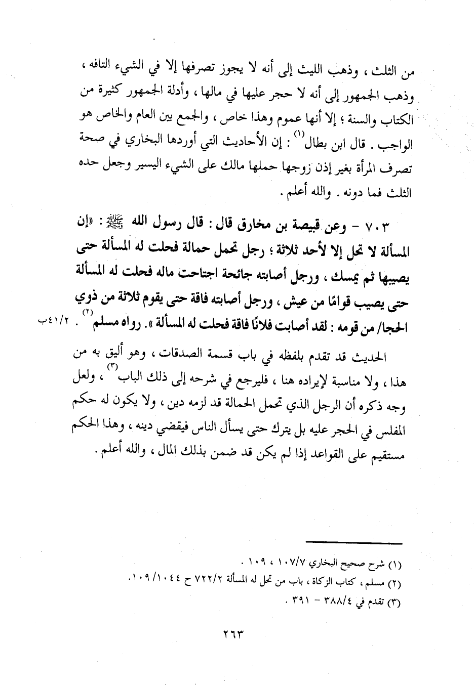 (¬2) مسلم، كتاب الزكاة، باب من تحل له المسألة 2/ 722 ح 1044/ 109.