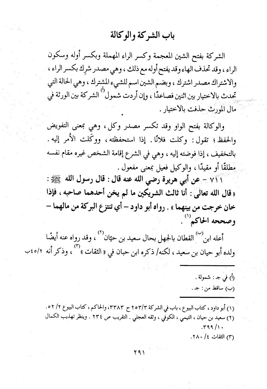 (¬1) أبو داود، كتاب البيوع، باب في الشركة 3/ 253 ح 3383، والحاكم، كتاب البيوع 2/ 52.