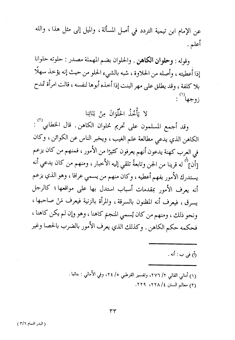 وقد أجمع السلمون على تحريم حُلوان الكاهن. قال الخطابي (¬2): الكاهن الذي يدعي مطالعة علم الغيب، ويخبر الناس عن الكوائن، وكان في العرب كهنة يدعون أنهم يعرفون كثيرًا من الأمور، فمنهم من كان يزعم [أن] (أ) له قرينا من الجن وتابعةً تلقي إليه الأخبار، ومنهم من كان يدعي أنه يستدرك الأمور بفهم أعطيه، وكان منهم من يسمي عرافا، وهو الذي يزعم أنه يعرف الأمور بمقدمات أسباب استدل بها على مواقعها؛ كالرجل يسرق، فيعرف أنه المظنون بالسرقة، والمرأة بالزنية فيعرف مَنْ صاحبها، ونحو ذلك، ومنهم من كان يُسمي المنجمَ كاهنا، وهو وإن لم يكن كاهنا، فحكمه حكم الكاهن. وكذلك الذي يعرف الأمور بالضرب بالحصا وغير