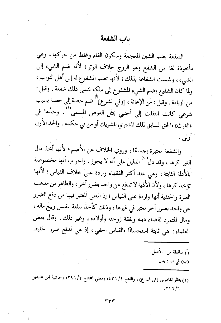 (¬1) ينظر القاموس (ش ف ع) والفتح 4/ 436، ومغني المحتاج 2/ 296، وحاشية ابن عابدين 6/ 216.