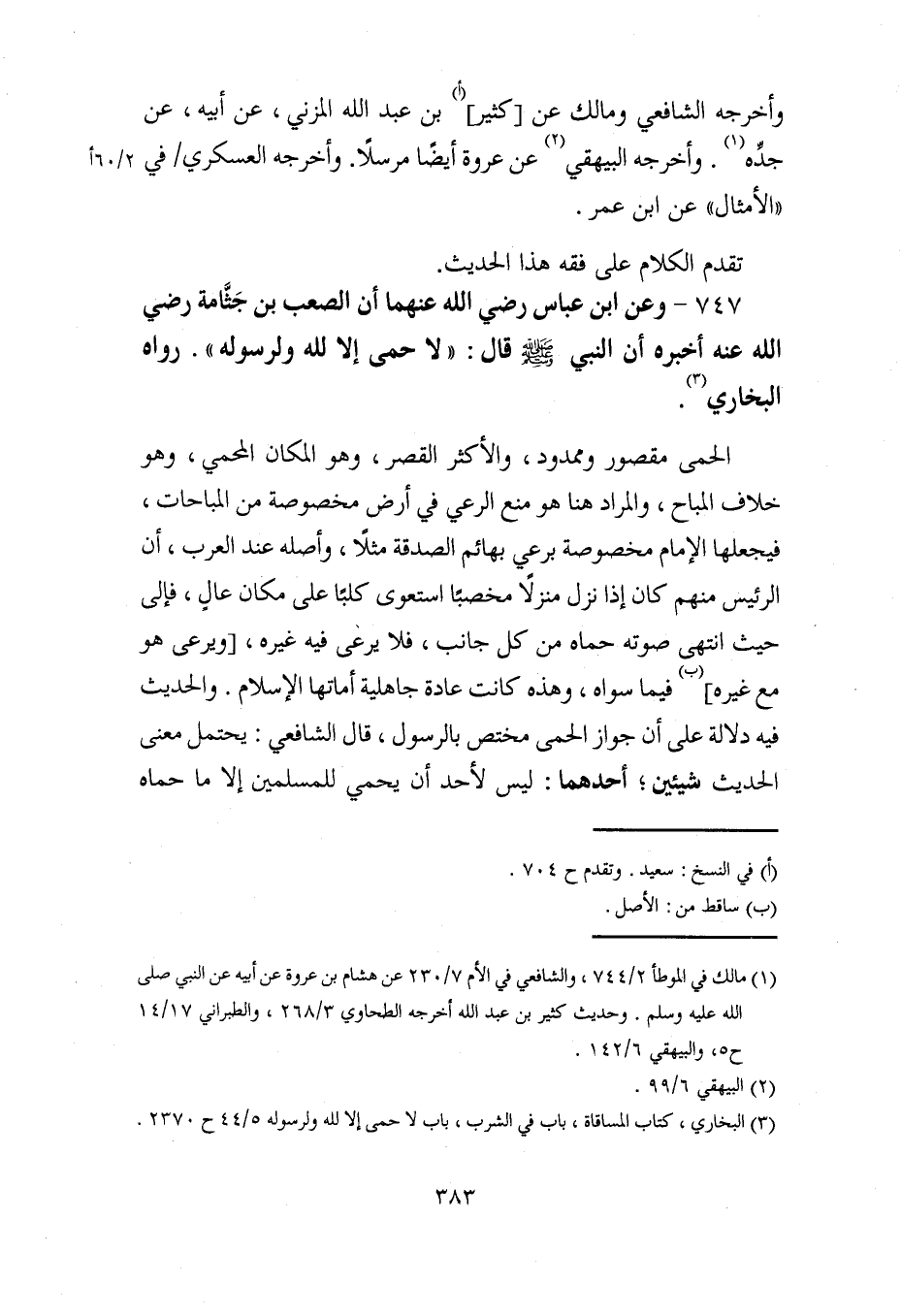 (¬3) البخاري، كتاب المساقاة، باب في الشرب، باب لا حمى إلا لله ولرسوله 5/ 44 ح 2370.