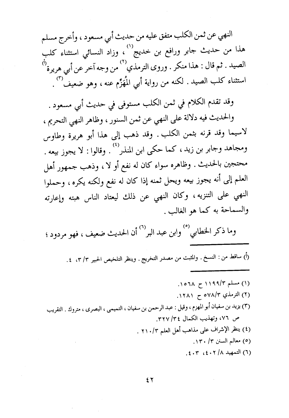 النهي عن ثمن الكلب متفق عليه من حديث أبي مسعود، وأخرج مسلم هذا من حديث جابر ورافع بن خديج (¬1)، وزاد النسائي استثناء كلب الصيد. ثم قال: هذا منكر. وروى الترمذي (¬2) من وجه آخر عن أبي هريرة (1) استثناء كلب الصيد. لكنه من رواية أبي المُهَزِّم عنه، وهو ضعيف (¬3).