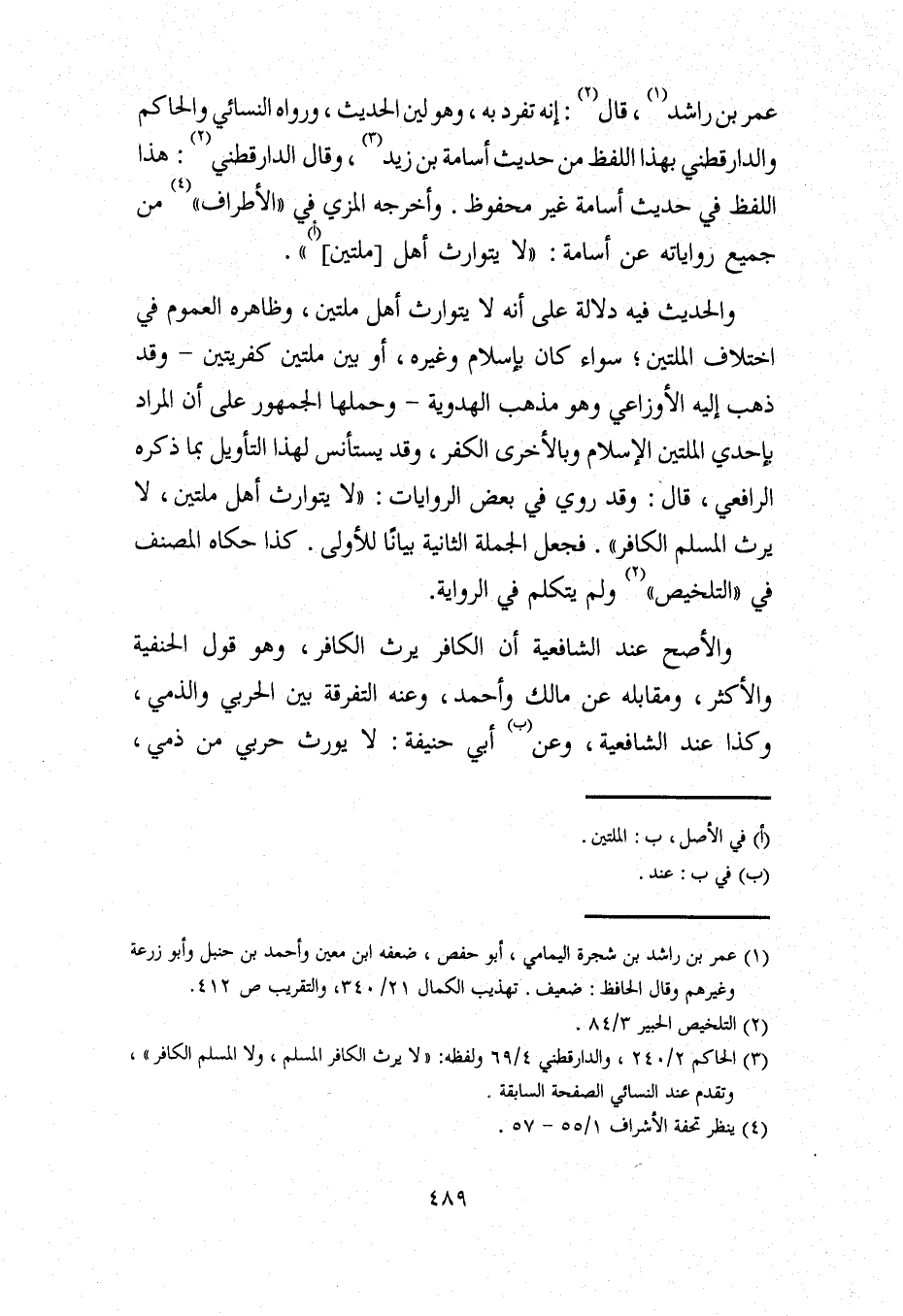 (¬3) الحاكم 2/ 240، والدارقطني 4/ 69 ولفظه: "لا يرث الكافر المسلم، ولا المسلم الكافر"، وتقدم عند النسائي الصفحة السابقة.