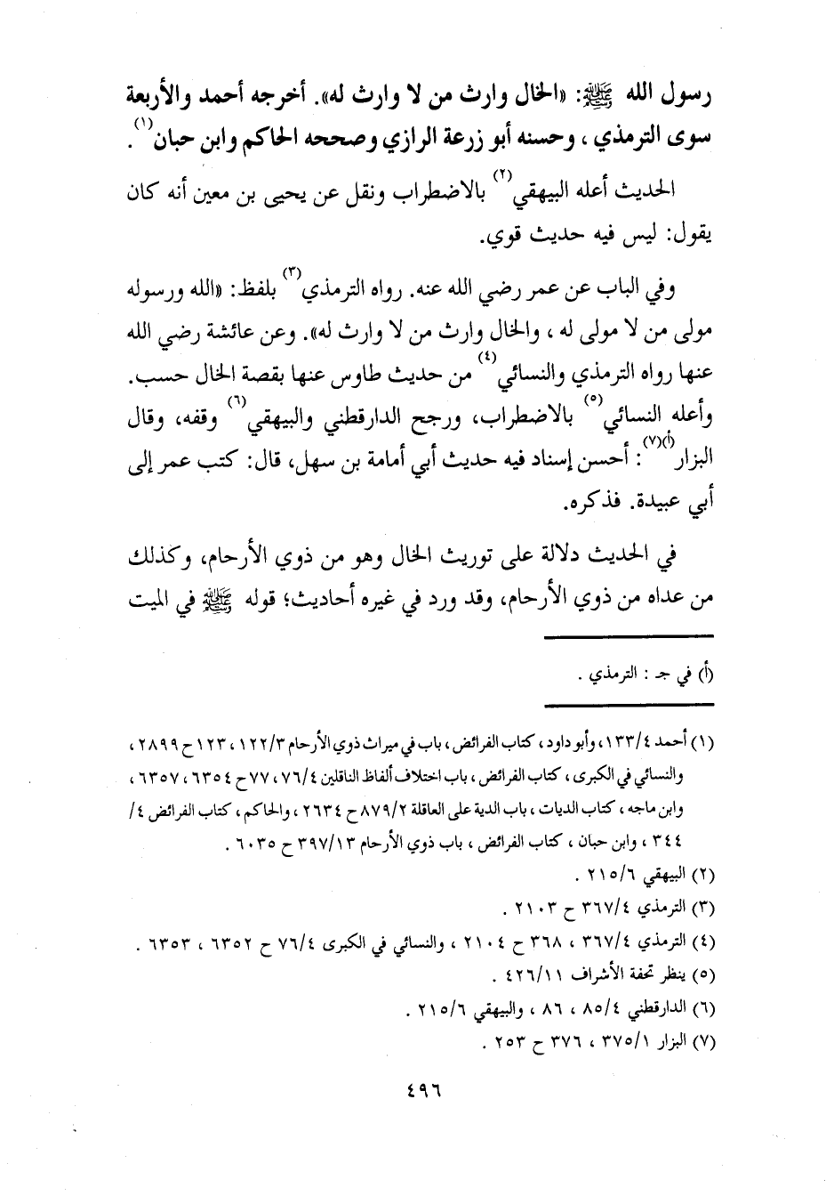 (¬1) أحمد 4/ 133، وأبو داود، كتاب الفرائض، باب في ميراث ذوي الأرحام 3/ 122، 123 ح 2899، والنسائي في الكبرى، كتاب الفرائض، باب اختلاف ألفاظ الناقلين 4/ 76، 77 ح 6354، 6357، وابن ماجة، كتاب الديات، باب الدية على العاقلة 2/ 879 ح 2634، والحاكم، كتاب الفرائض 4/ 344، وابن حبان، كتاب الفرائض، باب ذوي الأرحام 13/ 397 ح 6035.