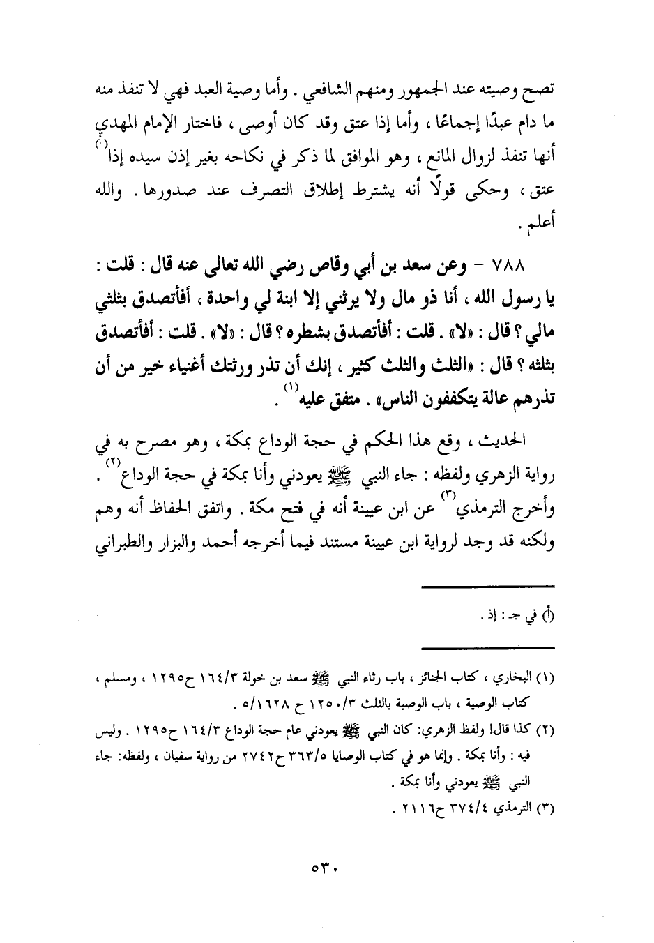 (¬1) البخاري، كتاب الجنائز، باب رثاء النبي - صلى الله عليه وسلم - سعد بن خولة 3/ 164 ح 1295، ومسلم، كتاب الوصية، باب الوصية بالثلث 3/ 1250 ح 1628/ 5.