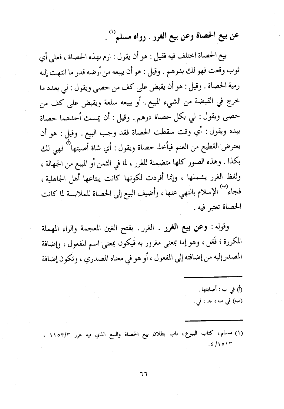 (¬1) مسلم، كتاب البيوع، باب بطلان بيع الحصاة والبيع الذي فيه غرر 3/ 1153، 1513/ 4.